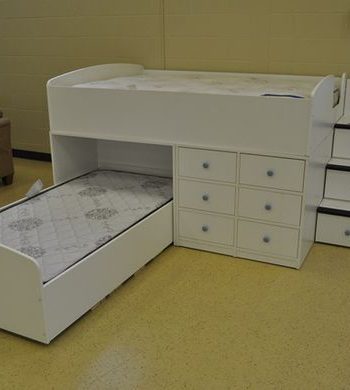 Brand New BERG SIERRA Full over Twin L Shaped Bunk Bed W/Beauty Rest Mattresses